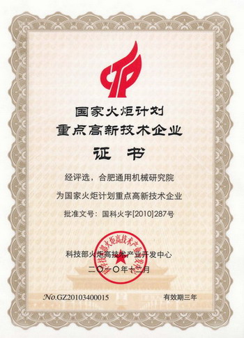 據科技部火炬高技術產業開發中心發布的《關于發布2010年國家火炬計劃重點高新技術企業評選結果的通知》(國科火字〔2010〕287號)中獲悉,2010年國家火炬計劃重點高新技術企業評選工作已經結束,我院喜獲2010年國家火炬計劃重點高新技術企業,此次安徽省共有22家單位入選。